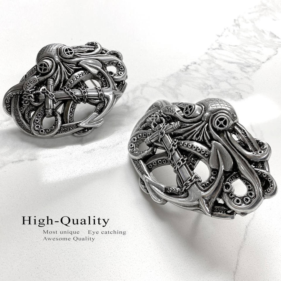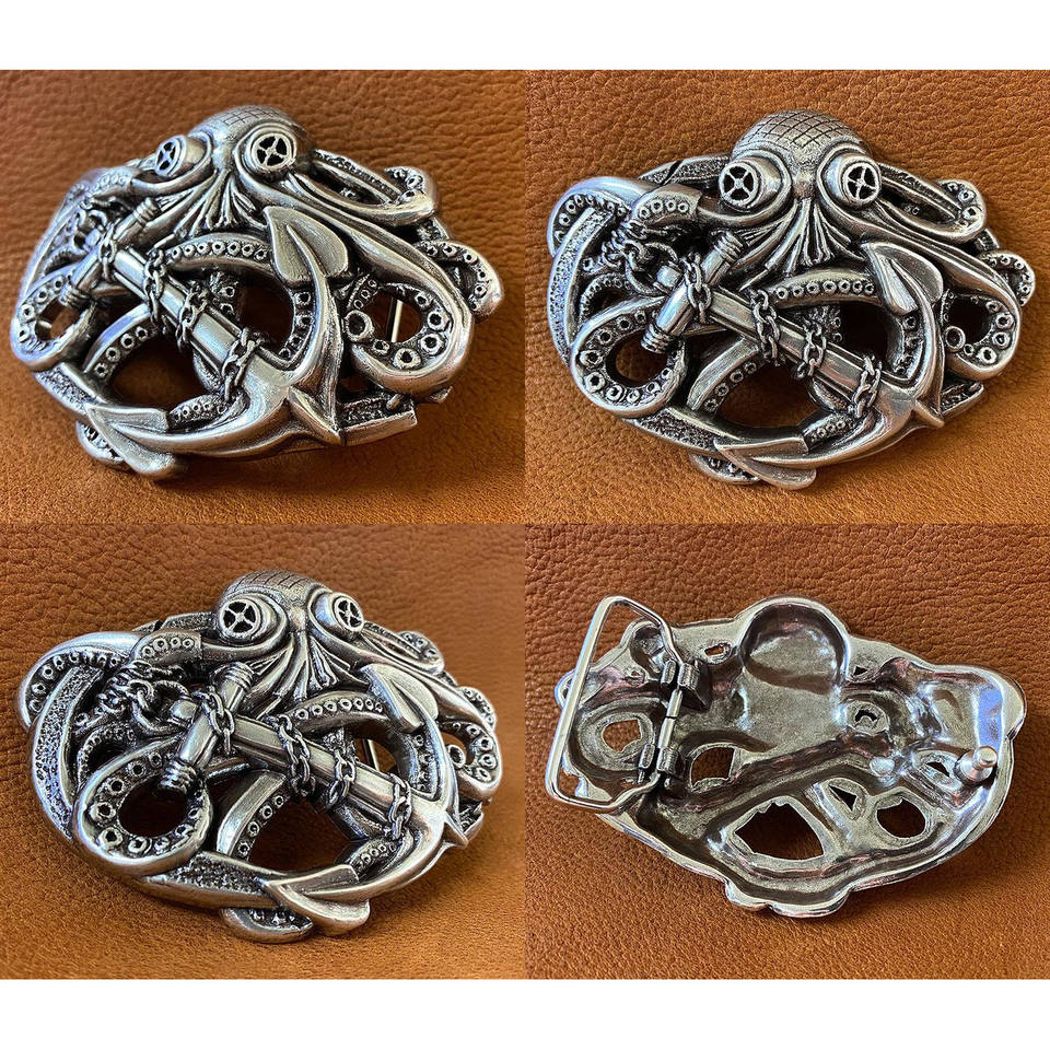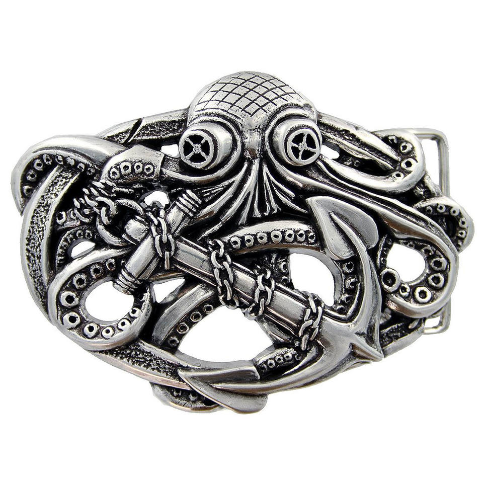 Antique Silver Steampunk Pirate Octopus Kraken Boat Anchor Belt Buckle