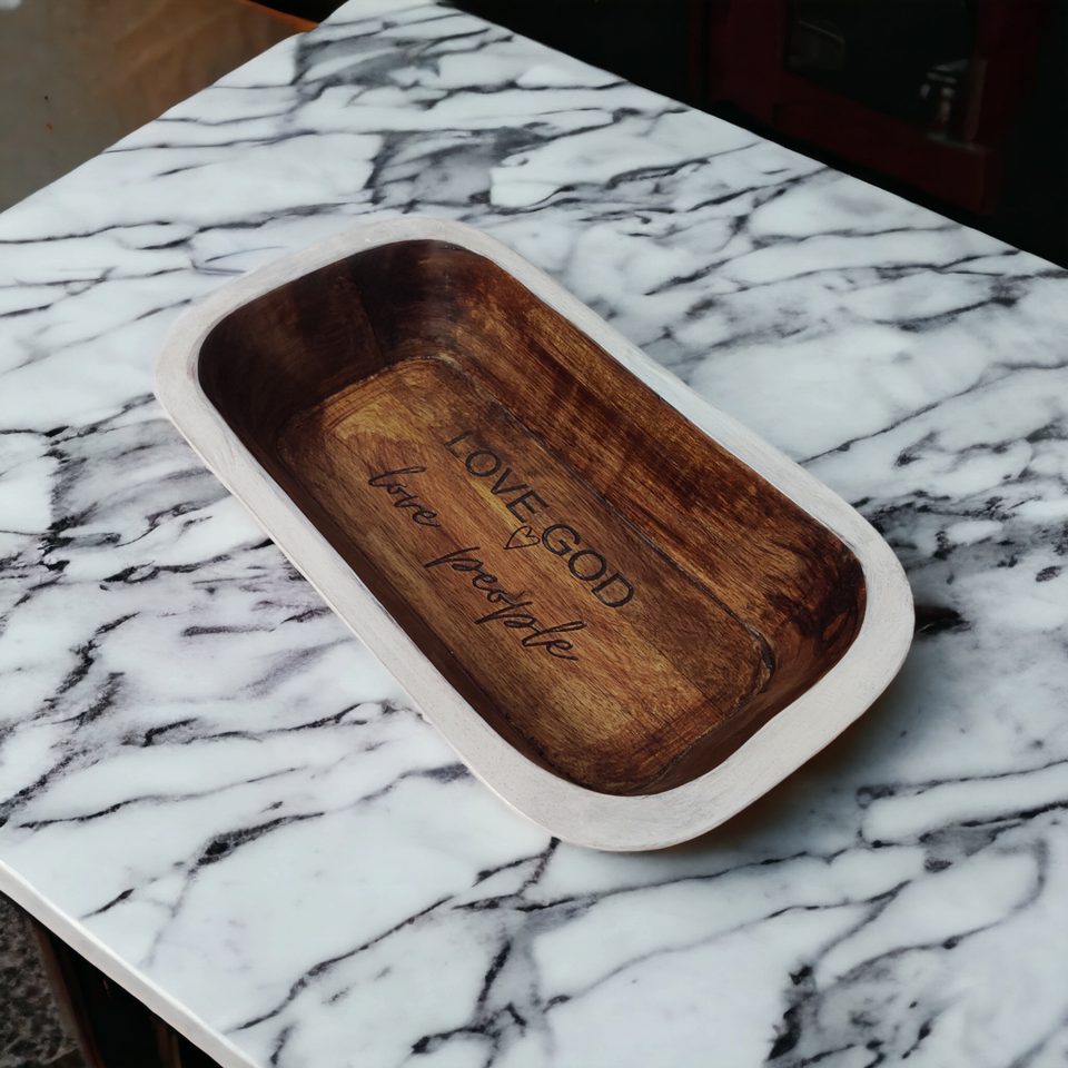 Antique Walnut White Prayer Dough Bowl Rustic Church Centerpiece for Home Farmhouse Decor Wood Candle Vessel Religious Gifts