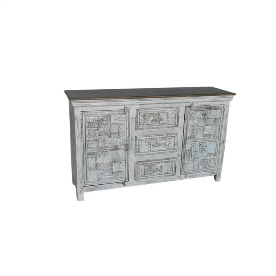 Antique Solid Wood Handmade Carved Door Cabinet Modern Luxury Vintage Sideboard for Home Living Room Bar Storage Chest Farmhouse