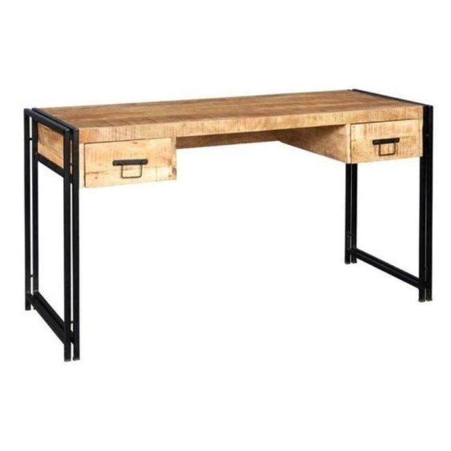 Antique-Style 2-Drawer Console Table Industrial Vintage Made Solid Mango Wood Indian Iron Metal for Home Farmhouse Apartment