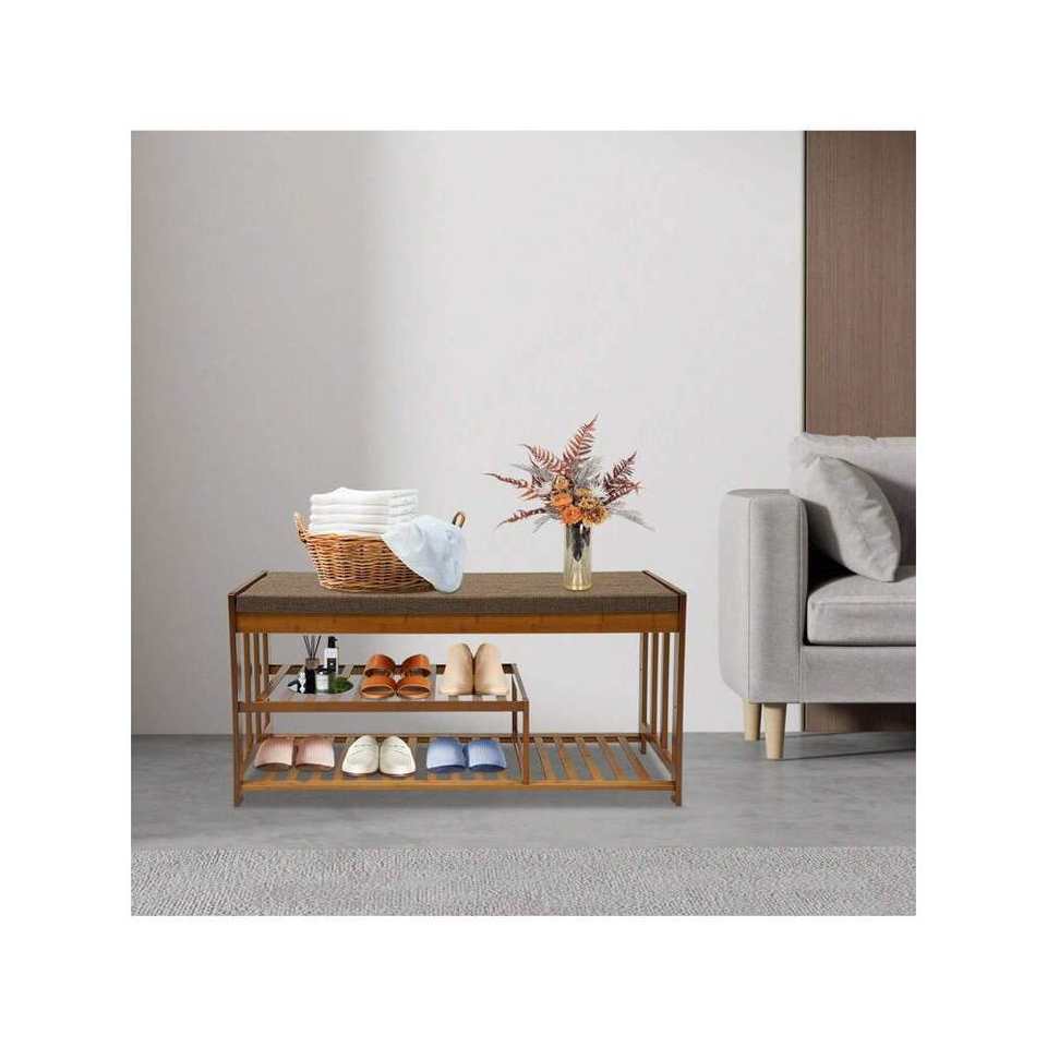 Antique Style Bamboo Long Shoe Bench Living Room Furniture with Shoe Storage for Porch Entrance