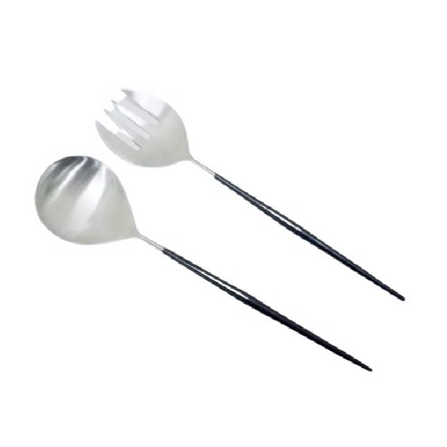 Antique Style Black Metal Stainless Steel Salad Server Spoon Set Stainless Steel Fork Salad Server Spoons With Holder