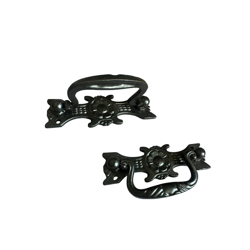 Antique Style Black Powder Coated Iron Drop Pull Indian Handmade Vintage Kitchen Dresser Bedroom Cabinet Handle Ornate Drawer