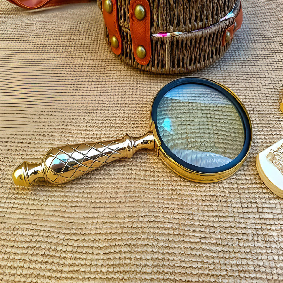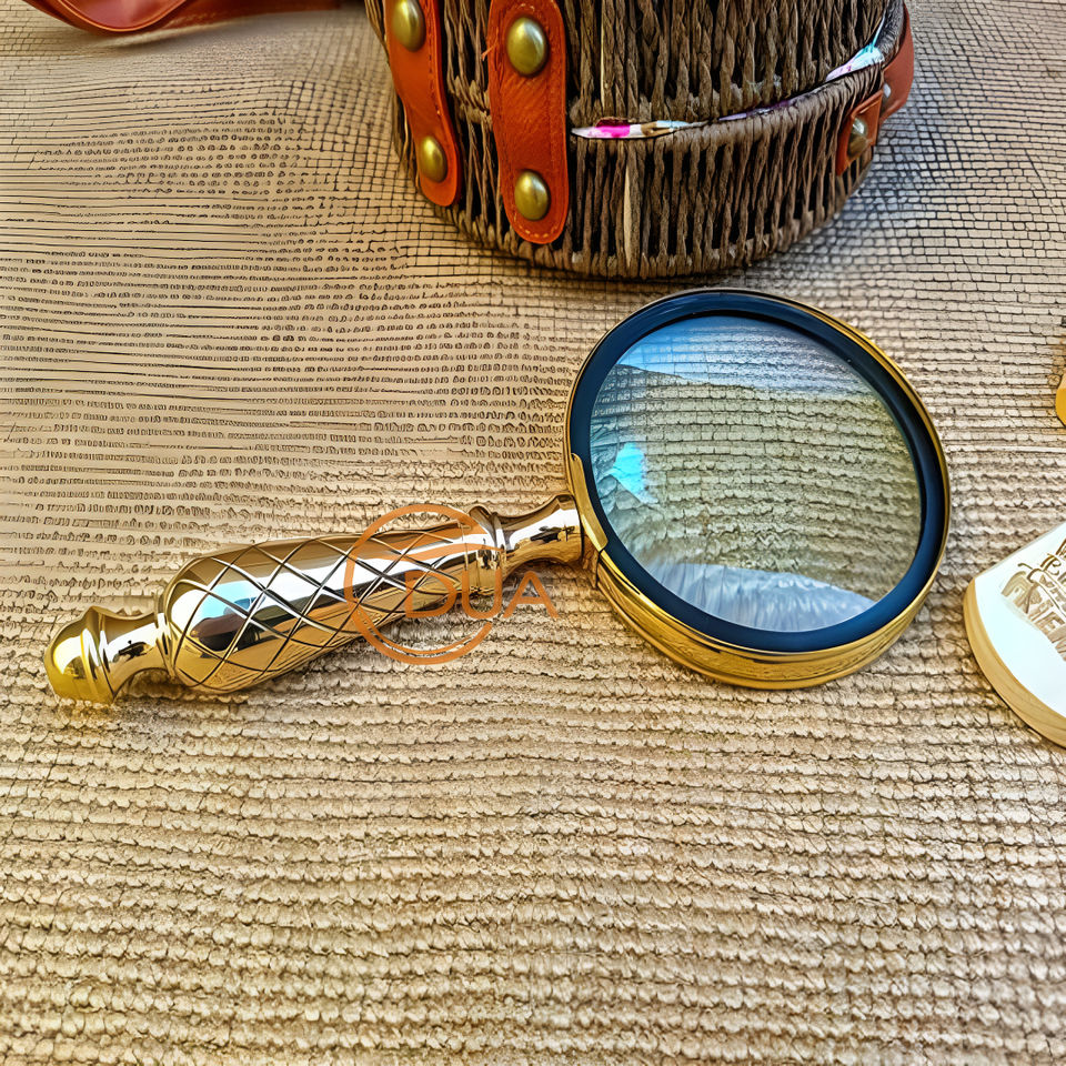 Antique Style Brass Handheld Magnifying Glass, Vintage Reading Magnifier with Decorative Handle for Reading and Inspection