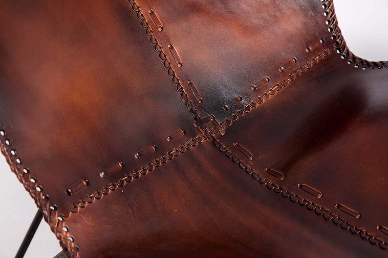 Antique-Style Brown Leather Butterfly Chair Foldable Foot Stool for Living Bedroom Dining Outdoor Leisure Rustic Design