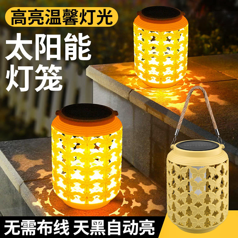Antique-Style Chinese-Style Solar-Powered ABS Material Hanging Pendant Lights Waterproof 6-12 Hours Lighting Time Plum Garden