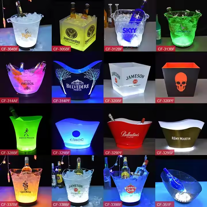 Antique Style Color Ice Bucket LED Light Classic Design Wine Bottle Cooler for Bar Counter KTV Home Use Printed Laser Options