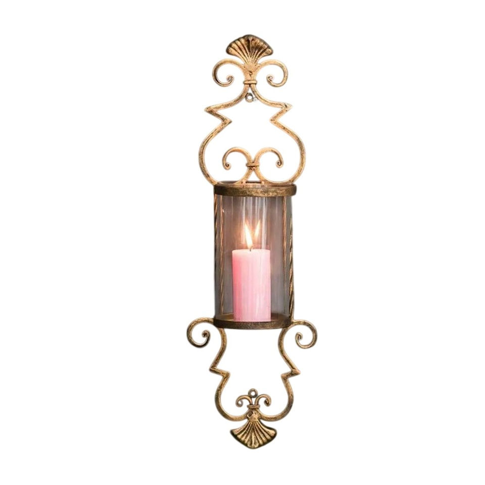 Antique Style Gold Metal Wall Sconce Candle Holder Vintage Iron Hanging Hurricane Votive Candlestick For Home Wedding Wall Decor