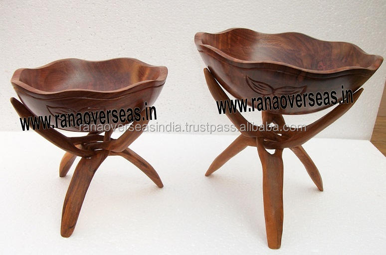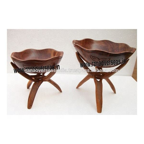 Product name:Hand Carved Wooden Serving Bowls With Tripod Stands