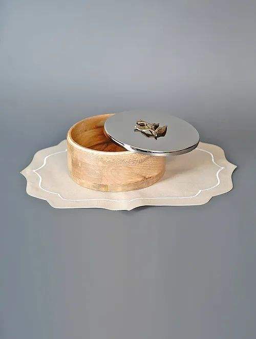 EXOTIC INDIAN ART Modern Luxury Handcrafted Mango Wood Wine Box Steel Lid Polished Stand Kitchen Souvenir Fairytale Wall Sign