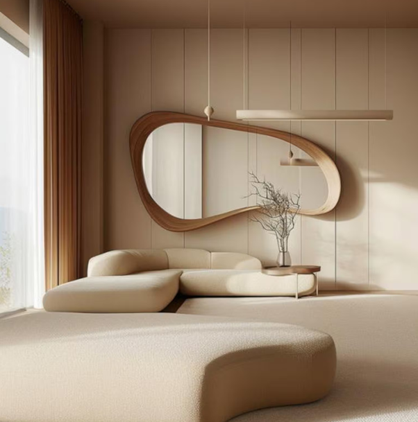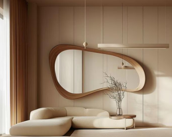 Antique-Style Handmade Eco-Friendly Lightweight Wall Mirror Real Walnut Wooden Frame Wavy Irregular Design Art Deco Style