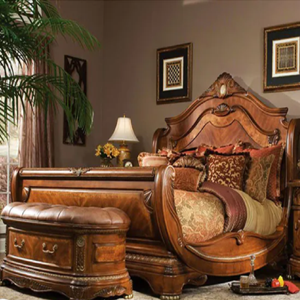 Antique Style Luxury Carved Bedroom Furniture Set Wooden Craft Queen Size Bedroom Set Affordable King Size Hand Carved Bed