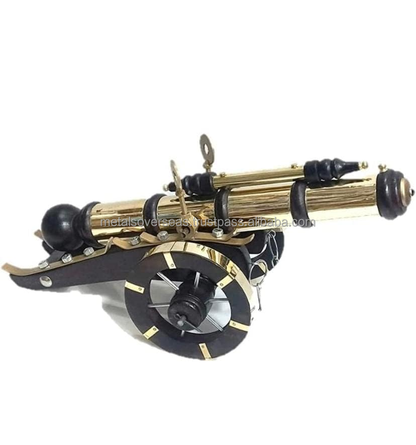 Handmade Premium Quality Antique Style Miniature Brass Dark Wood Art Deco Cannon Model Fast Delivery for Home Decor Collectors