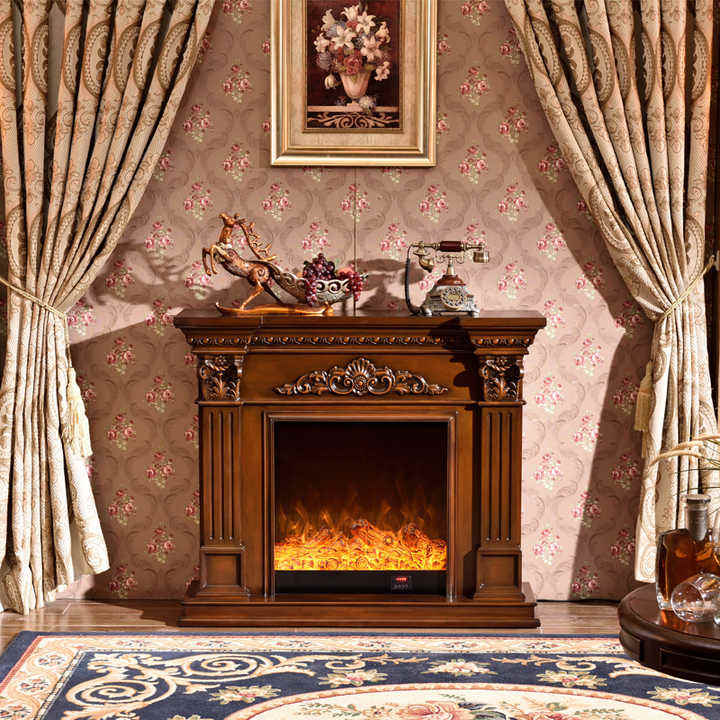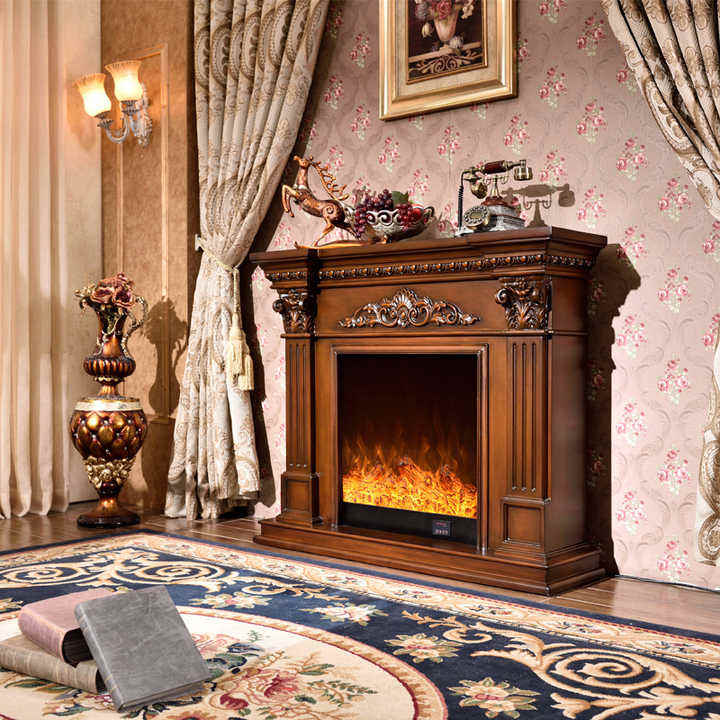 Antique Style Modern Rustic Oak Electric Fireplace Mantel Surround Shelf Wood Burning Stove TV Stand Indoor Adjustable