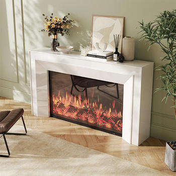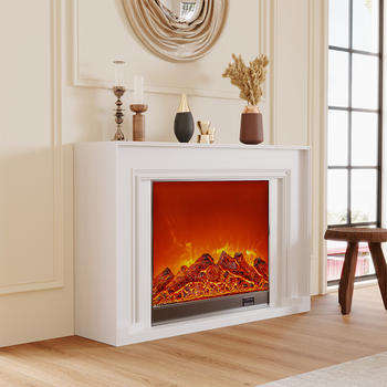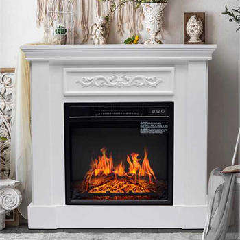 Antique Style Modern Rustic Oak Electric Fireplace Mantel Surround Shelf Wood Burning Stove TV Stand Remote Control Apartments