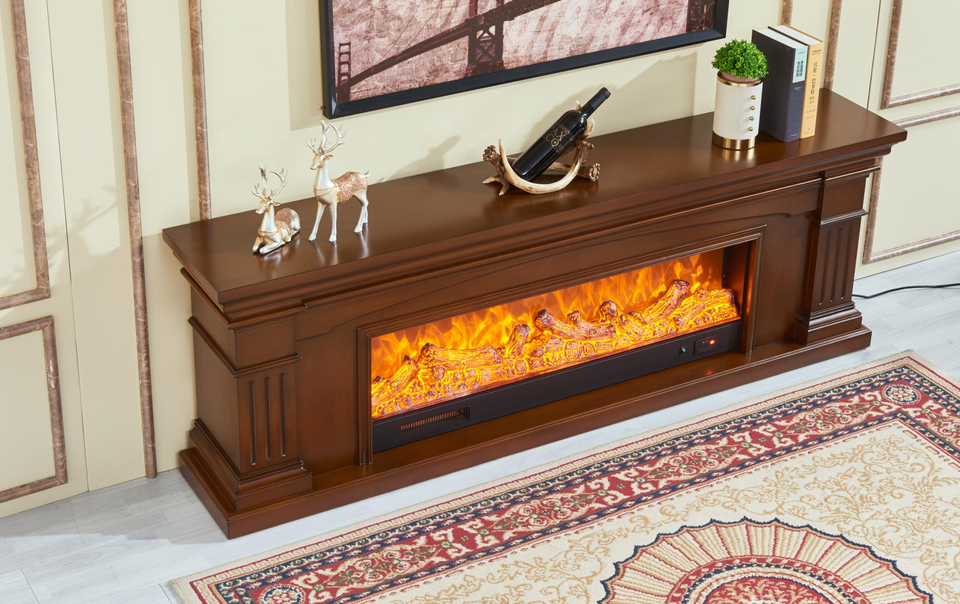 Antique Style Modern Rustic Oak Electric Fireplace Mantel Surround Shelf Wood Burning Stove TV Stand Remote Control Apartment