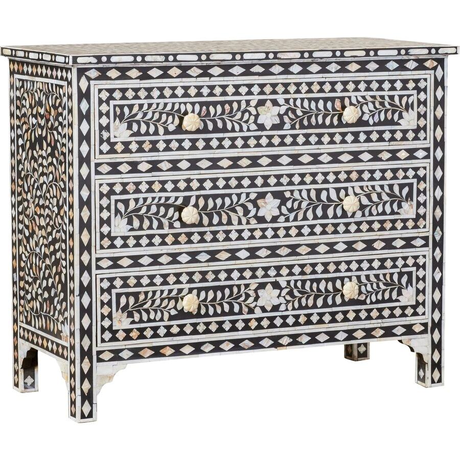 Antique Style Mother of Pearl Cabinet with Drawers Handcrafted Wooden Storage Dresser for Home & Hotel Decor