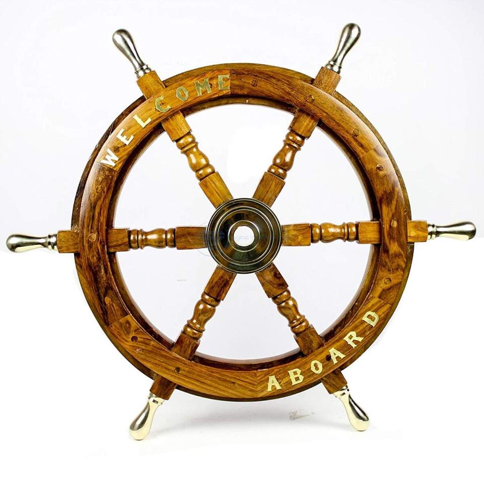 Antique Style Nautical Brass Ship Wheel Maritime Steering Wheel for Wall Hanging in Home Office or Beach House