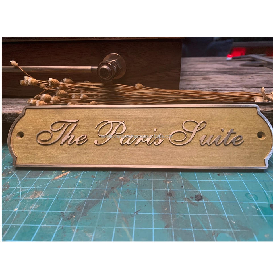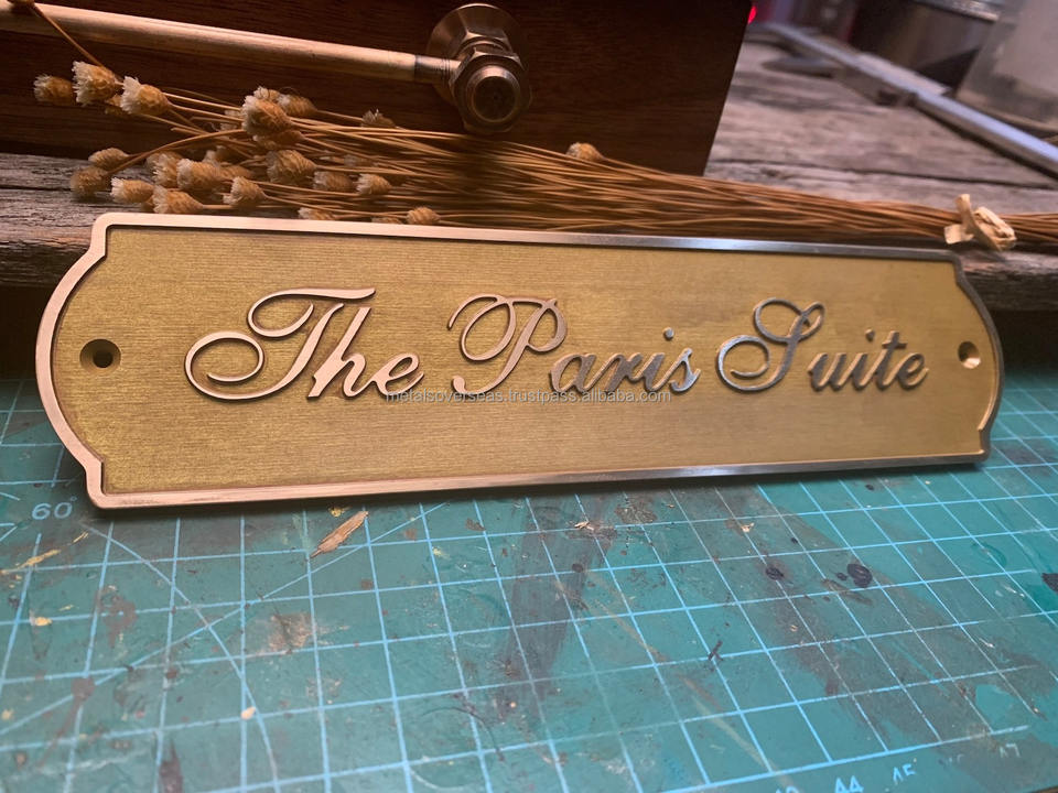 Antique Style Personalized Brass Metal Plaque the Paris Suite with Raised Cursive Lettering Vintage Suite Sign