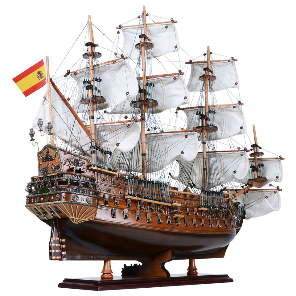 Antique Style San Felipe L60 Curved Sails Nautical Decor Model Wood Cedar Painted Technique 72Lx24.5Wx70H cm