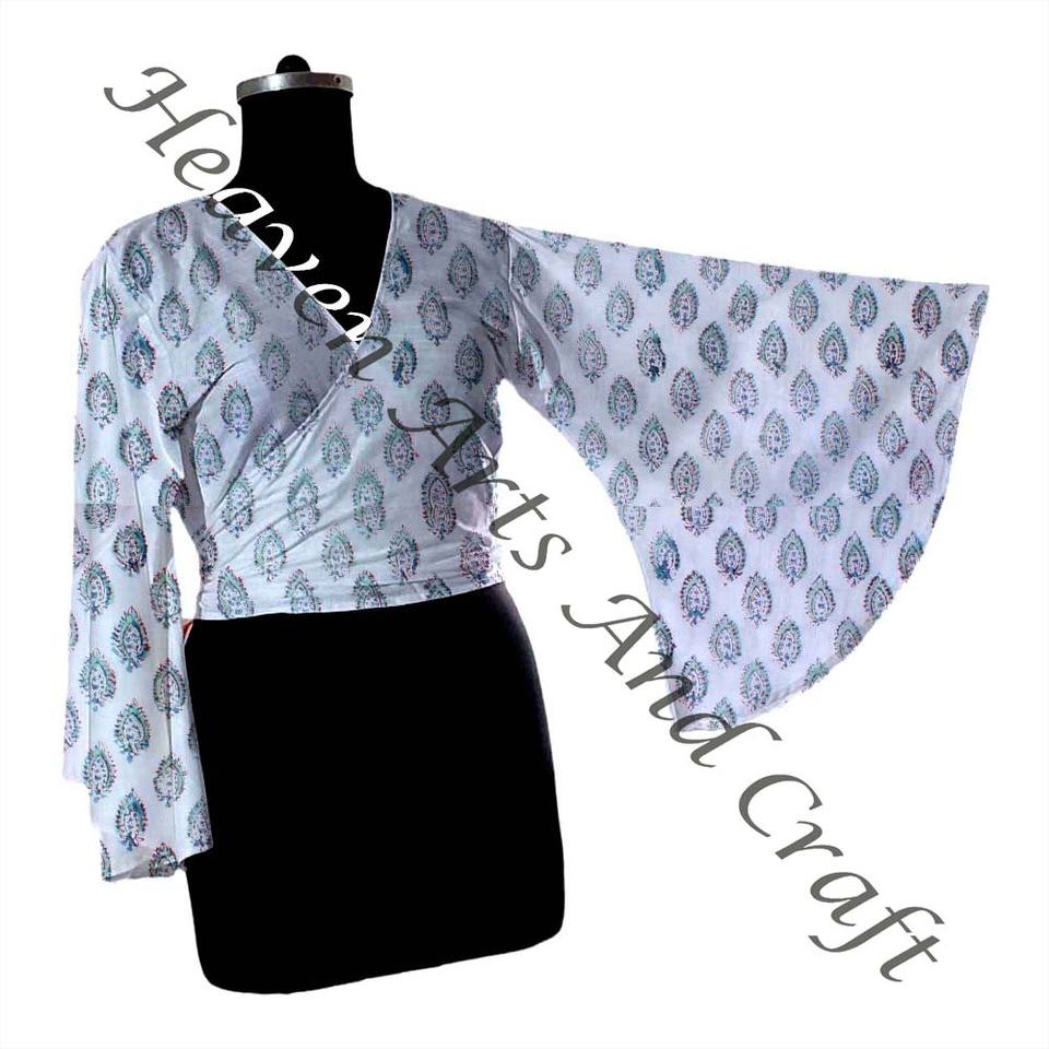 Model Number:Hand Block Print Cotton Tie Tops Bell Sleeves
