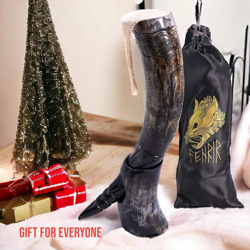 Antique Stylish Viking Drinking Horn With 2 Colour Shades Drinking Horn Customized Hand Carving by HANNAN HANDICRAFT
