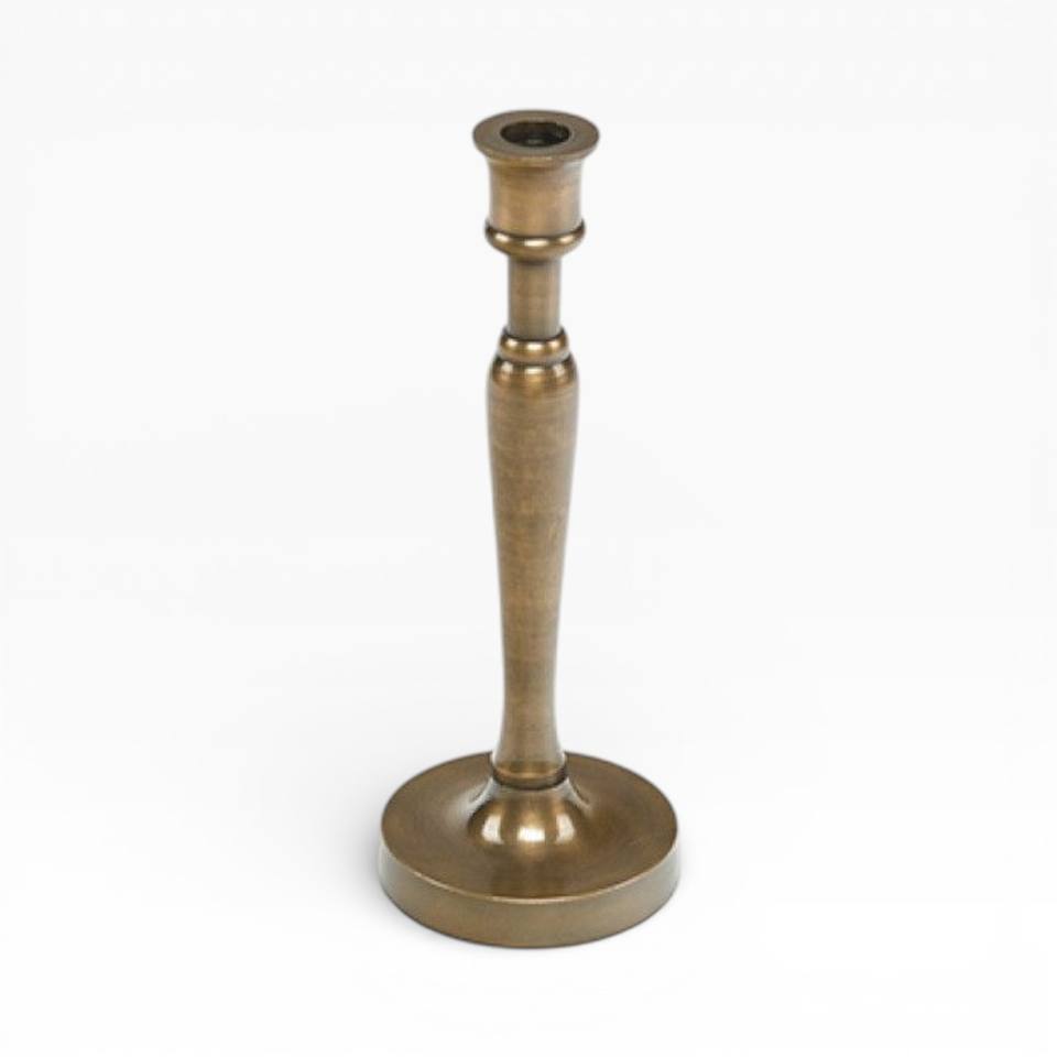 Antique Tall Brass Single Candle Holder With Round Base For Stable Table Display Decoration