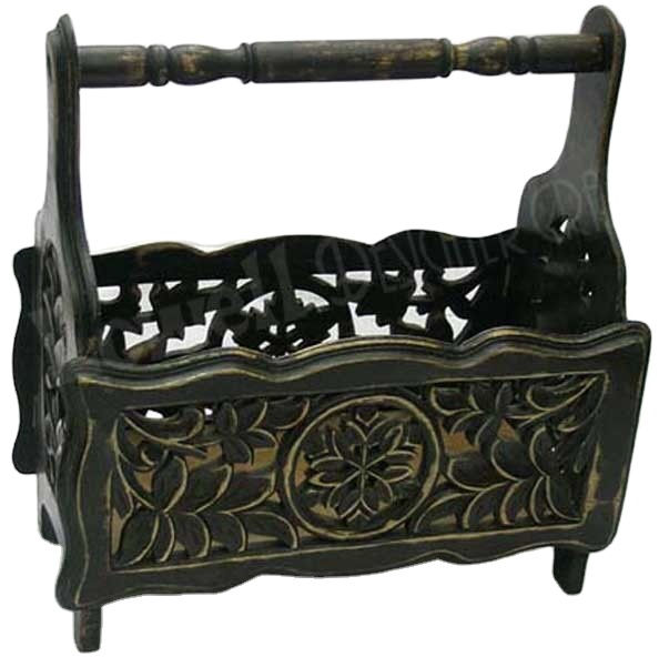 Antique Teak Wood Craft Polished & Hand-Carved Magazine Rack and Money Box Elegant Decorative Organizer for Home Office