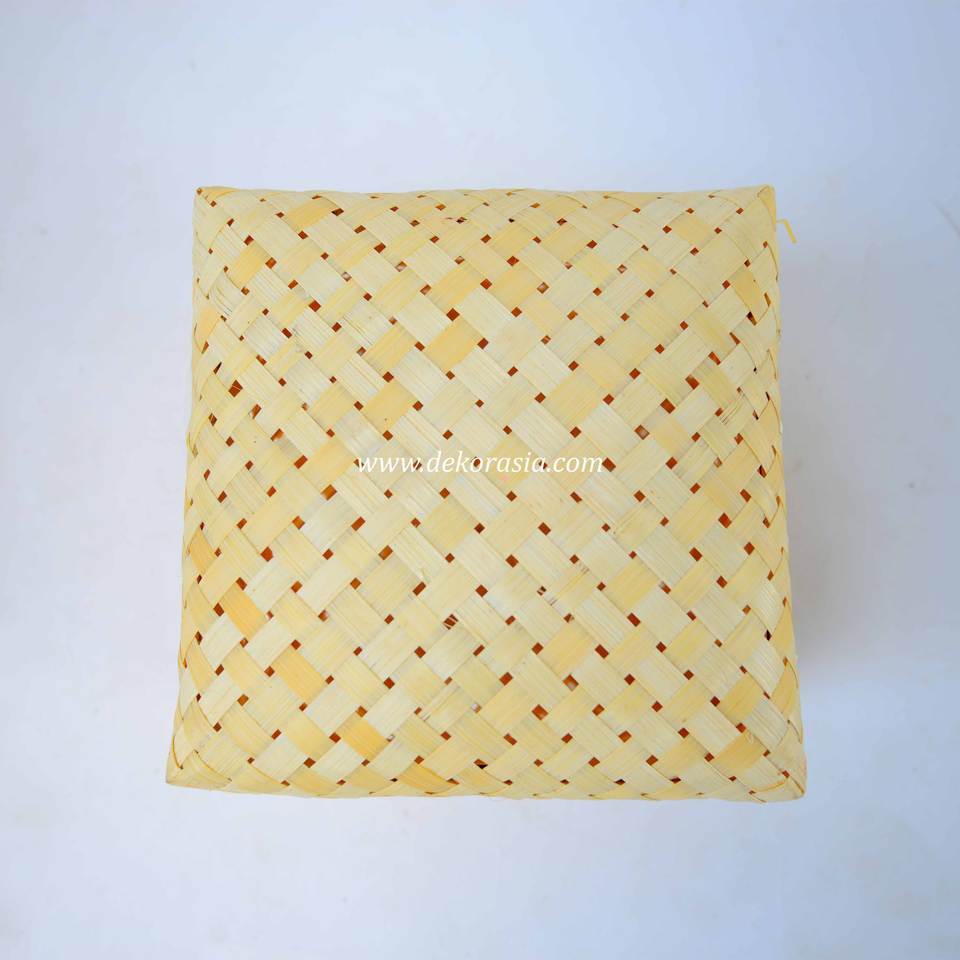 Antique Traditional Bamboo Woven Storage Box with Lid Handmade Natural Craft Pattern Food Basket