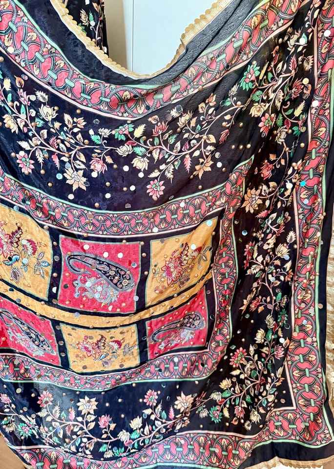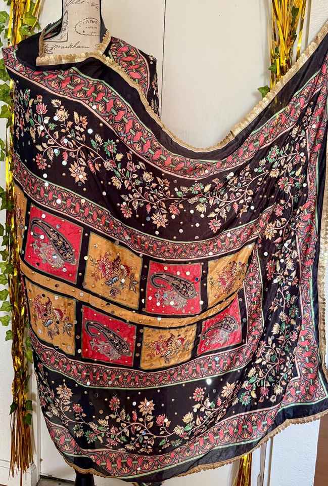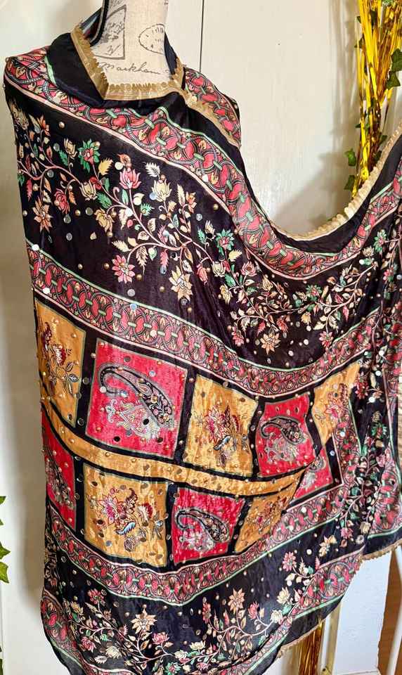 Antique Traditional Tribal Gypsy Embroidered Mirrors & Gotta Work Silk Shawls Vintage Handcrafted Women Ethnic Scarves & Shawls