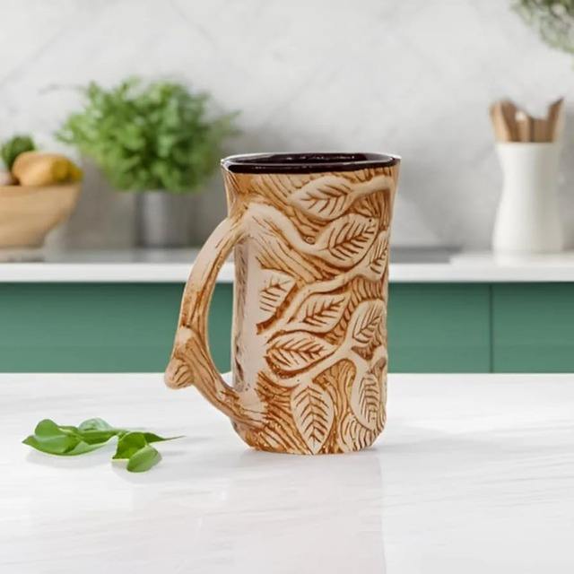Antique Tree Design Vintage Tall Ceramic Mug Eco-Friendly for Coffee Tea Beer or Water with Customizable Color
