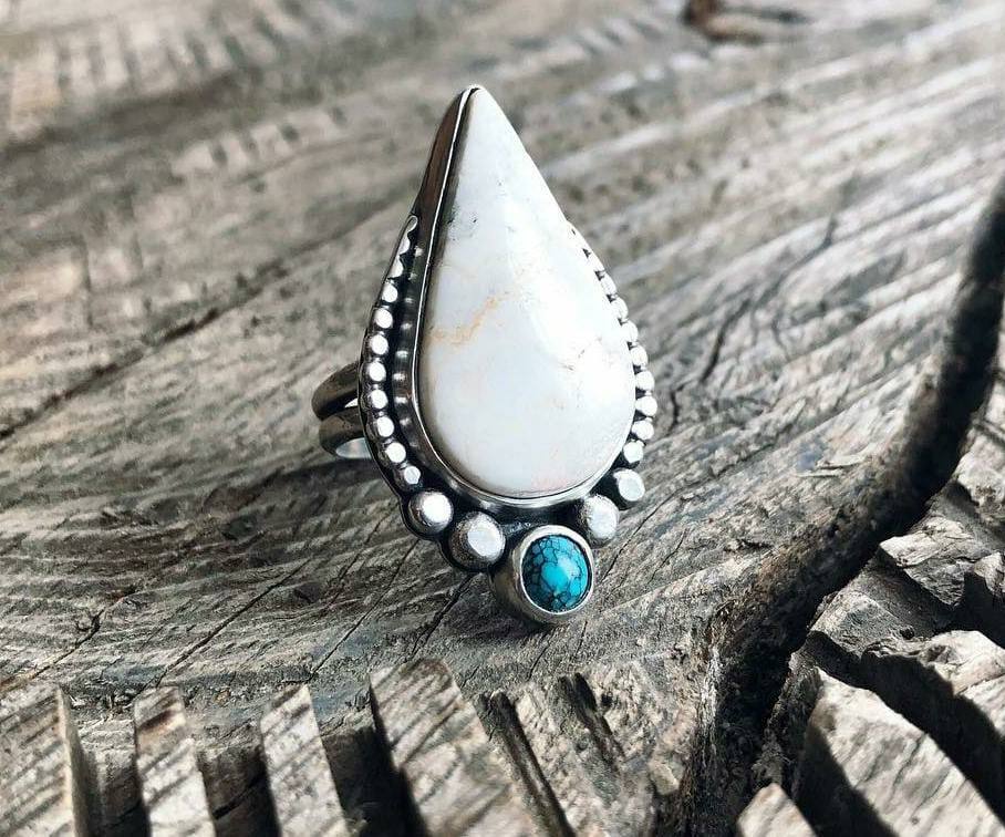 Turquoise & Howlite Gemstone Handmade Ring Statement Jewelry