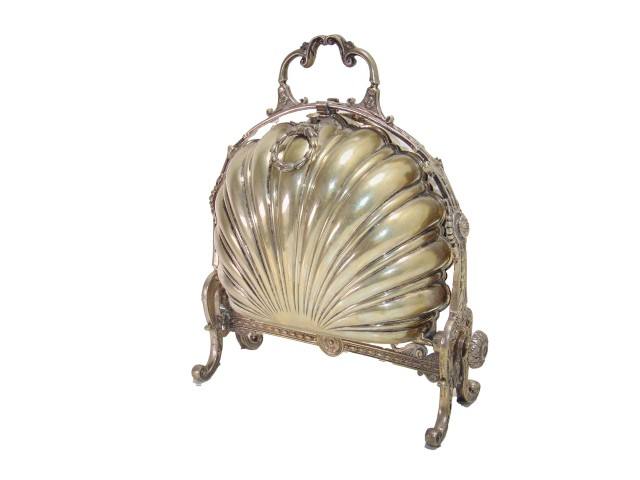 Antique Victorian English Silver Plated Scallop Shell Bun Warmer Biscuit Box Ornate Stand Handle Home Decor
