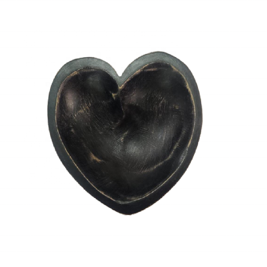 Antique Vintage Black Heart Shaped Wax Filling Candle Dough Bowl Wedding Favors Artisanal mango Wood Crafts Centerpiece Supplies
