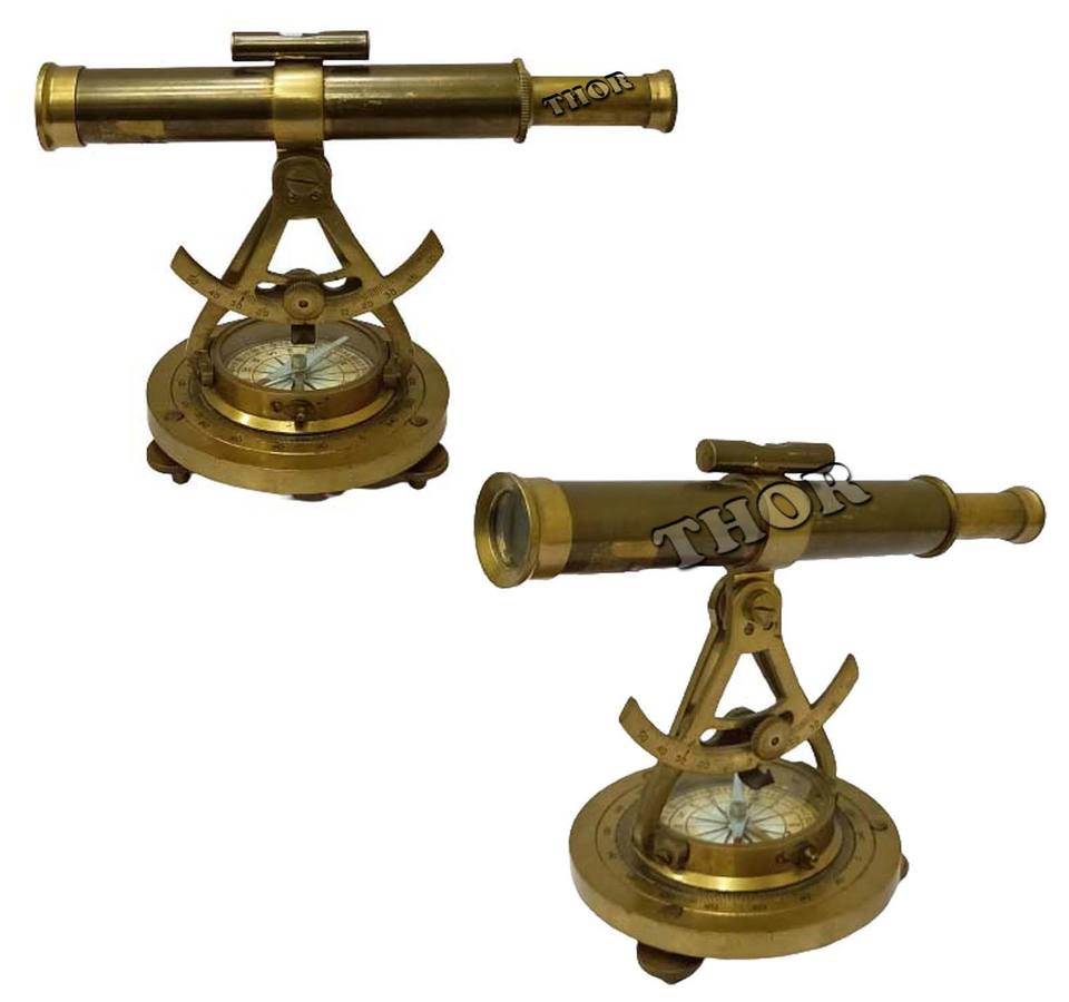 Antique Vintage Brass Alidade Telescope with Compass Functional Navigation Survey Tool for Office Decor or Gift Item