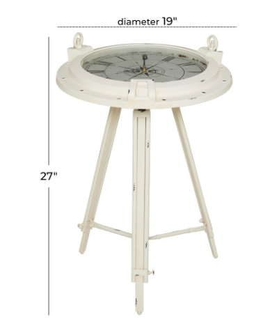 Antique Vintage Brass Porthole Clock Wood Table Top Round Bar Coffee Table for Home Living Room Use