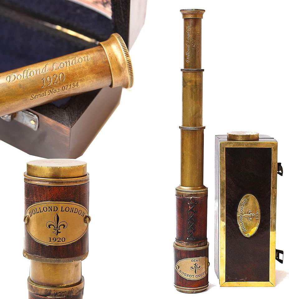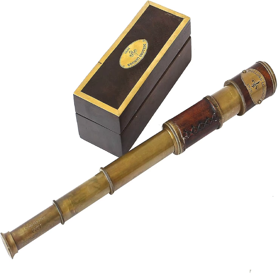 Antique Vintage Brass Telescope Spyglass with Leather & Wood Handle Enhance Your Nautical Decor Metal Crafts Product