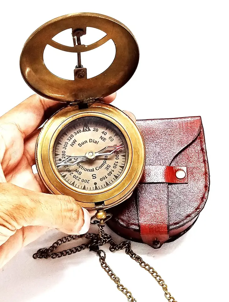 Antique Vintage Nautical Brass Sundial Compass Unique Quality Pocket Maritime Gift Solid London Box Style Home Garden Metal Wood