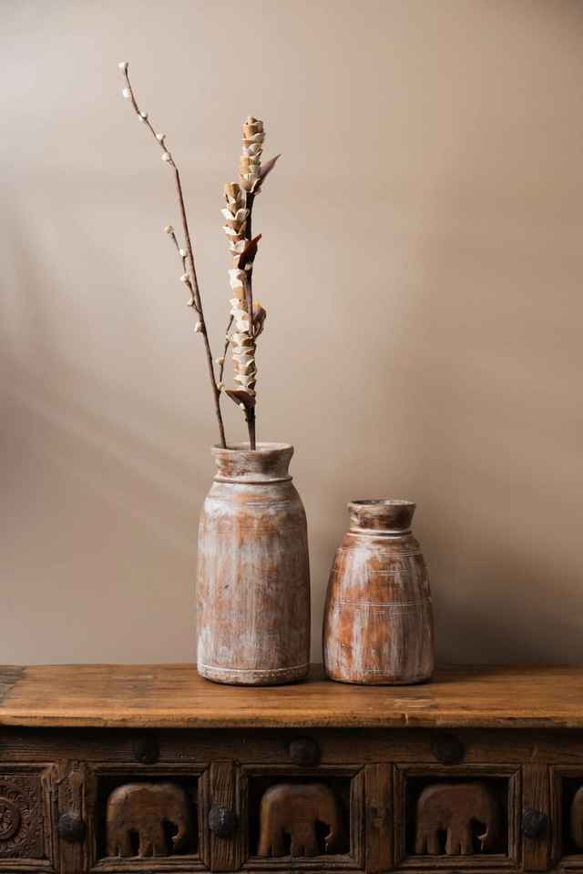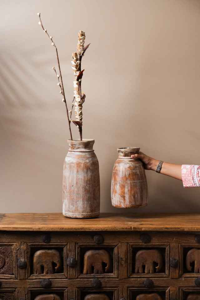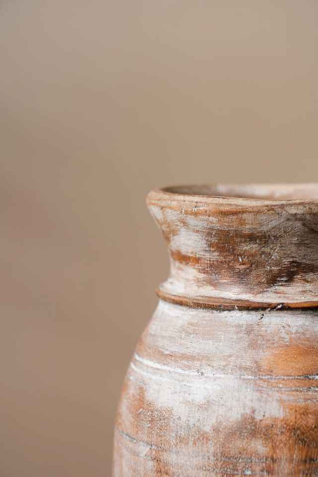 Antique Vintage Rattan Pot Bleach Finishing Handmade Modern Wooden Vase for Living Room Christmas Decor Bamboo & Wooden Vases