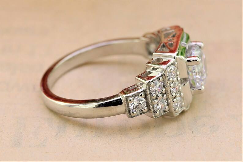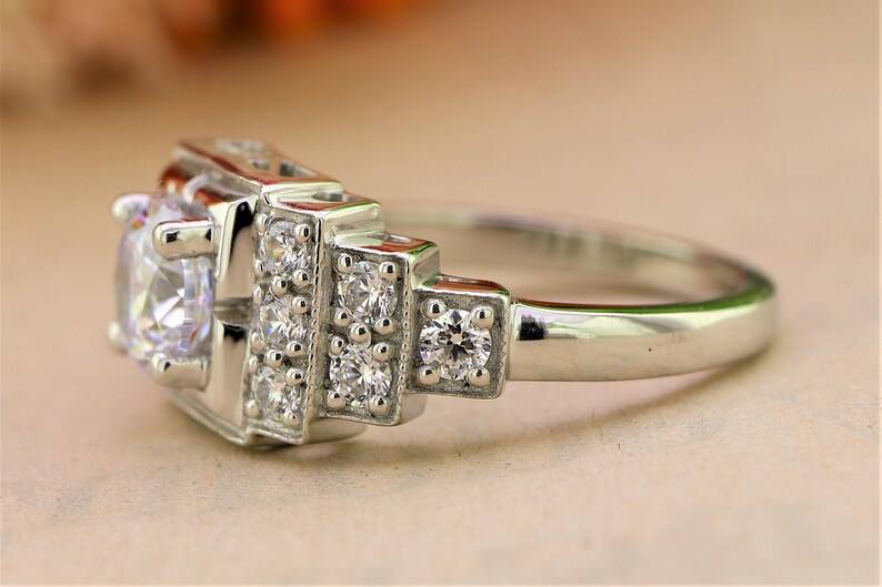 Antique Vintage Round Moissanite Engagement Ring Unique Diamond Cluster Ring 925 Sterling Silver Promise Ring For Her