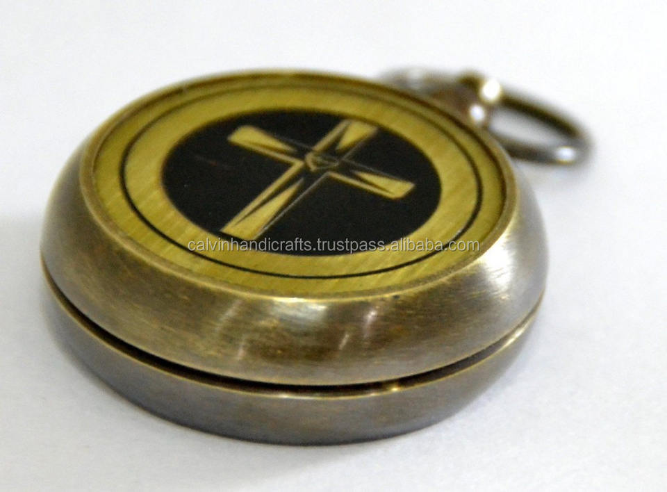 Antique Vintage Solid Brass Nautical Gift Polished Compass LOCKET with Long Chain for Valentine Day or Tableware Decor