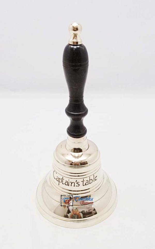 Antique Vintage Style Brass Nautical Ship Bell With Wooden Stand Handheld Designer Metal Crafts for Easter Collectible Gift