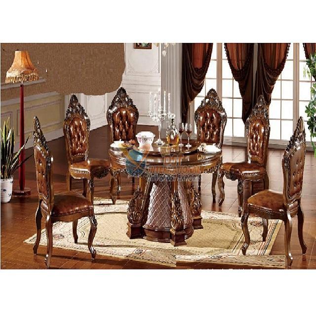 Antique Walnut Finish Round Dining Table SetProduct name