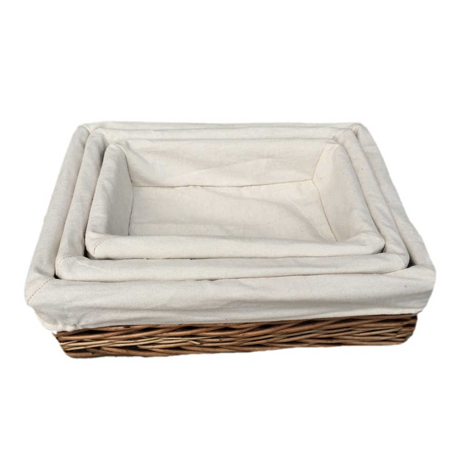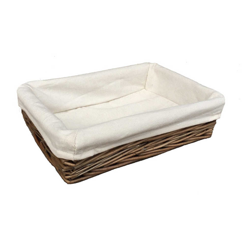 Antique Wash Rectangular Straight Sided Wicker Tray with Lining Elegant Baskets Collection