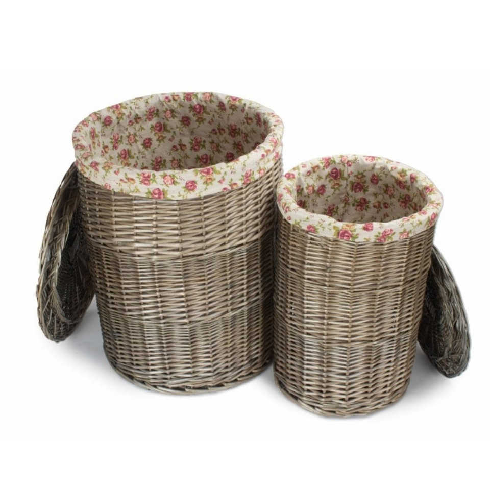 Antique Wash Round Garden Rose Cotton Lined Foldable Storage Basket for Bathroom Wardrobe Kitchen Use Fabric/Cloth Material