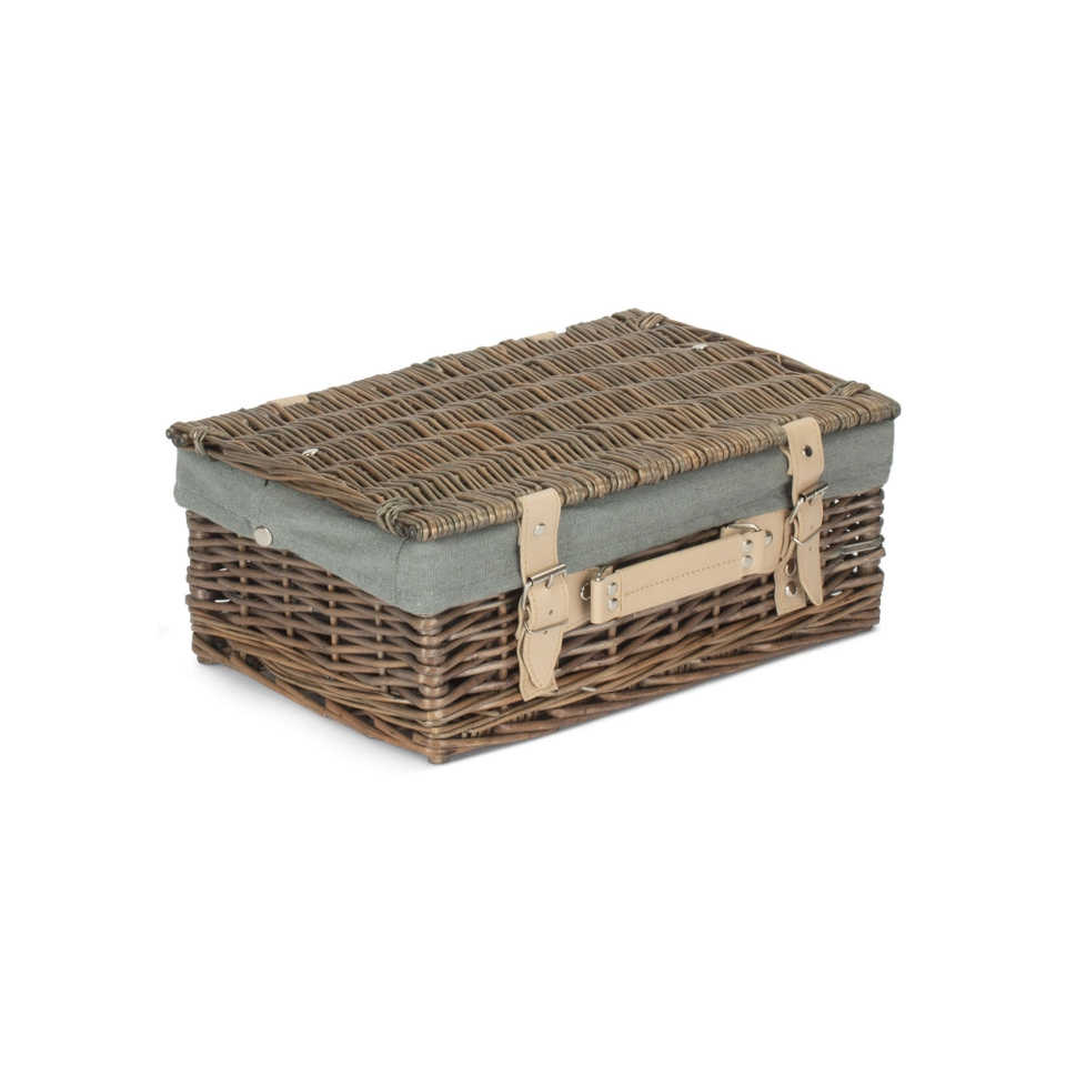 Antique Washed 36 cm Picnic Basket with Cotton Lining Woven Basket Storage