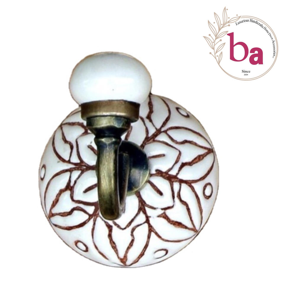 Antique White Ceramic Etched Tile Wall Coat Hooks & Keychain Hanger Hot Selling Brass Product in the Hooks & Rails Category