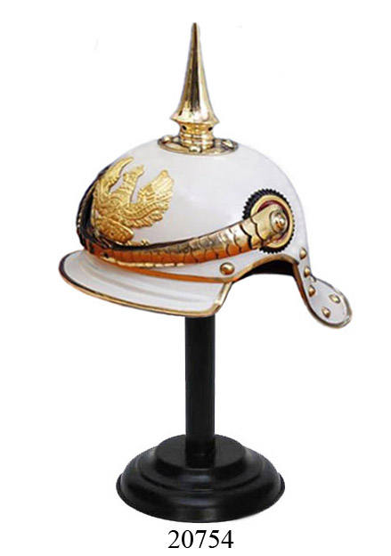 Antique White German Pickelhaube Armor Helmet Carved Iron with Spike Made of Metal Direct from Manufacturer
