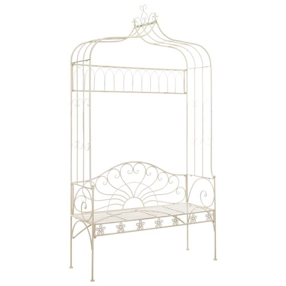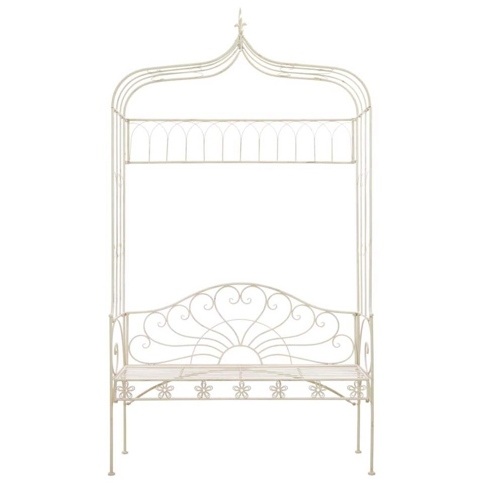 Antique White Wrought Iron Garden Bench 2 Seater Outdoor Patio Furniture Durable Design