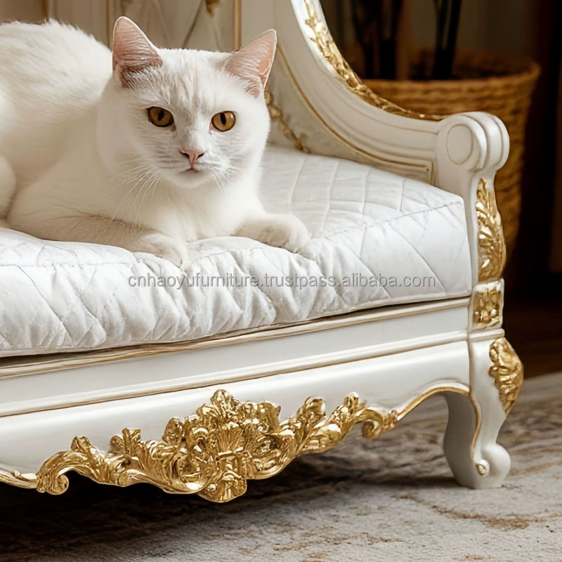 Antique White with Golden Color Velvet Luxury Pet House Villa for Indoor Sofa Bed Removable and Washable for Dogs and Cats